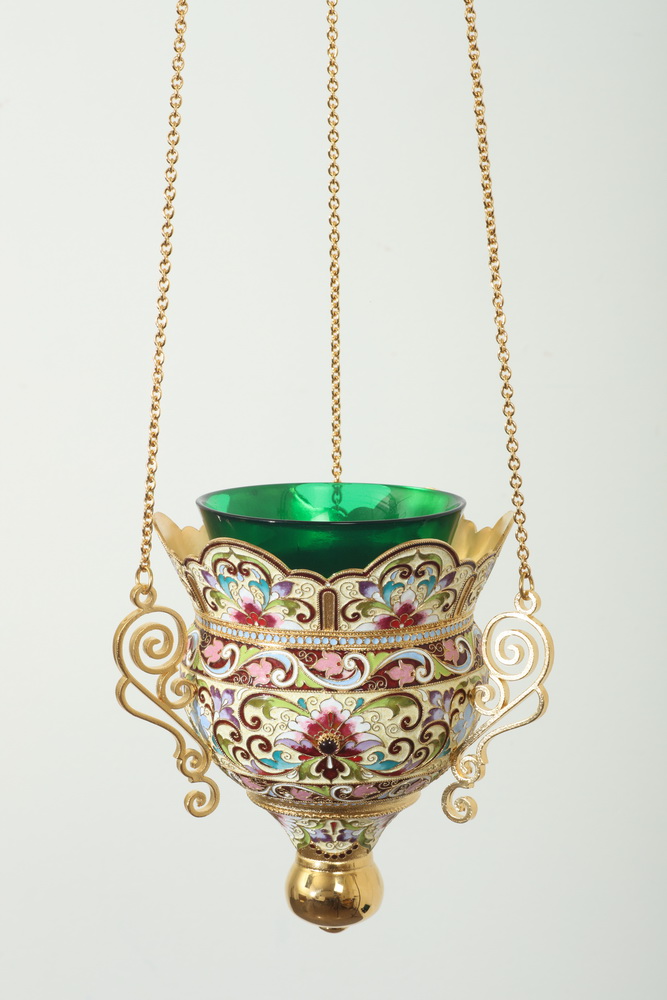 Стаканы из цветного хрусталя временно отсутствуют. Лампады можно изготовить только с прозрачным хрустальным стаканом либо со стаканом из окрашеного цветного стекла.
