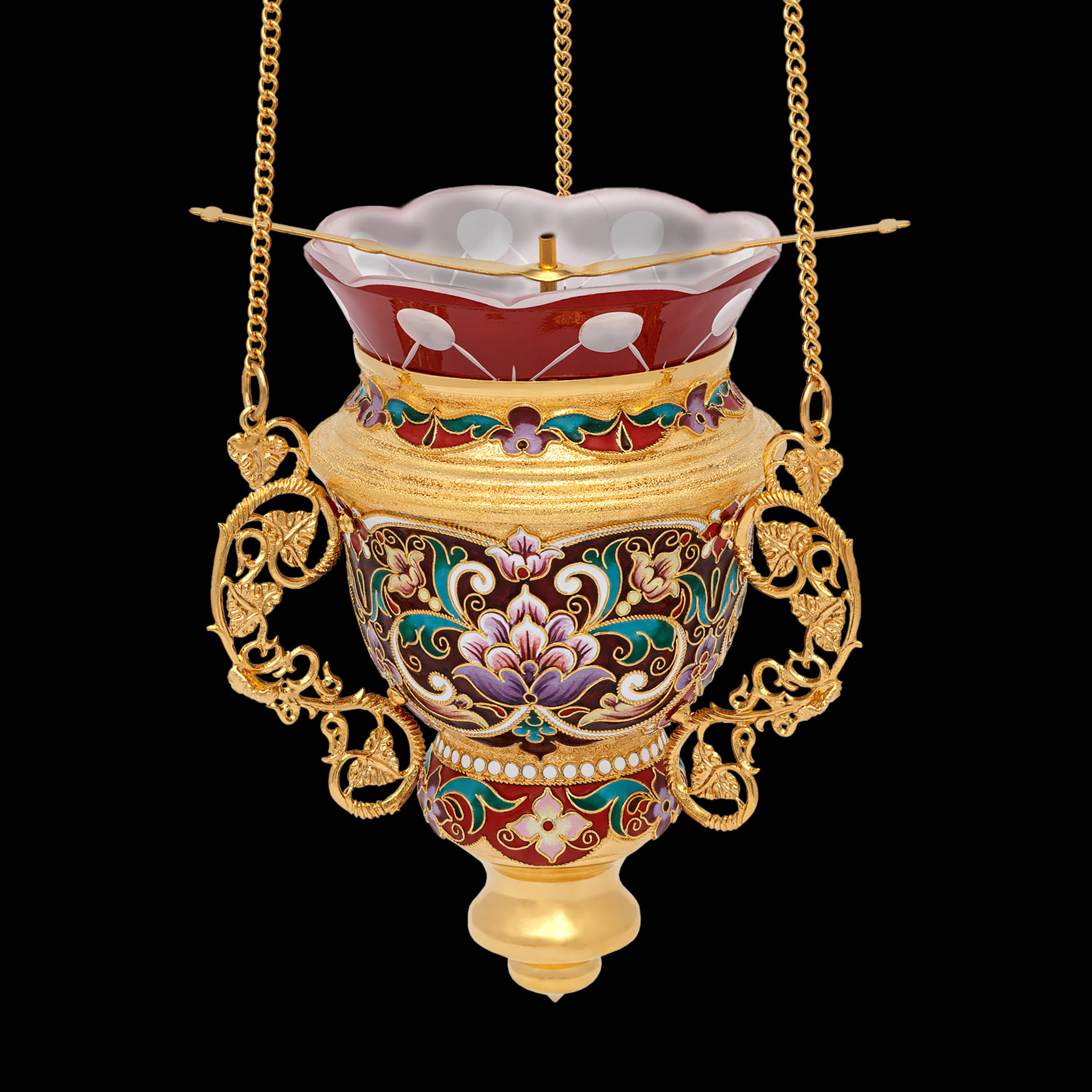 Стаканы из цветного хрусталя временно отсутствуют. Лампады можно изготовить только с прозрачным хрустальным стаканом либо со стаканом из окрашеного цветного стекла.