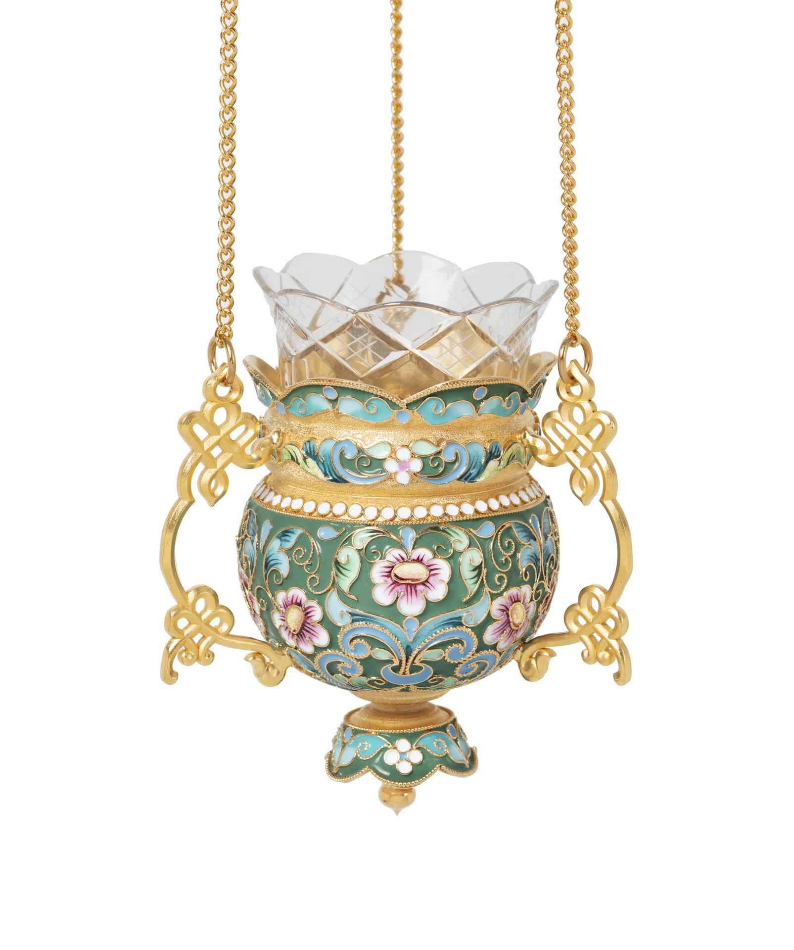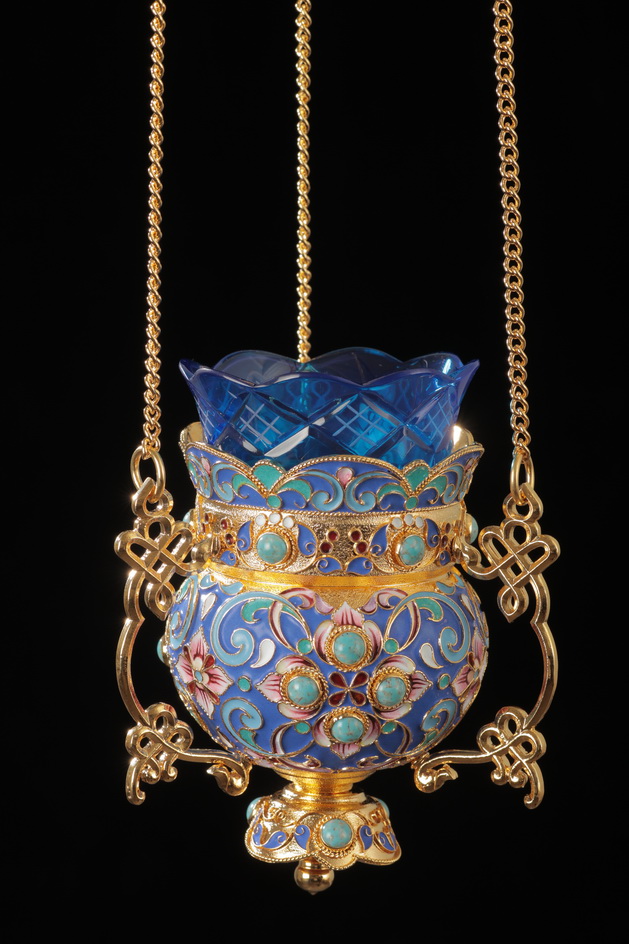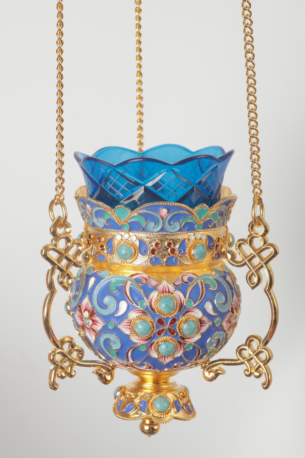 Стаканы из цветного хрусталя временно отсутствуют. Лампады можно изготовить только с прозрачным хрустальным стаканом либо со стаканом из окрашеного цветного стекла.