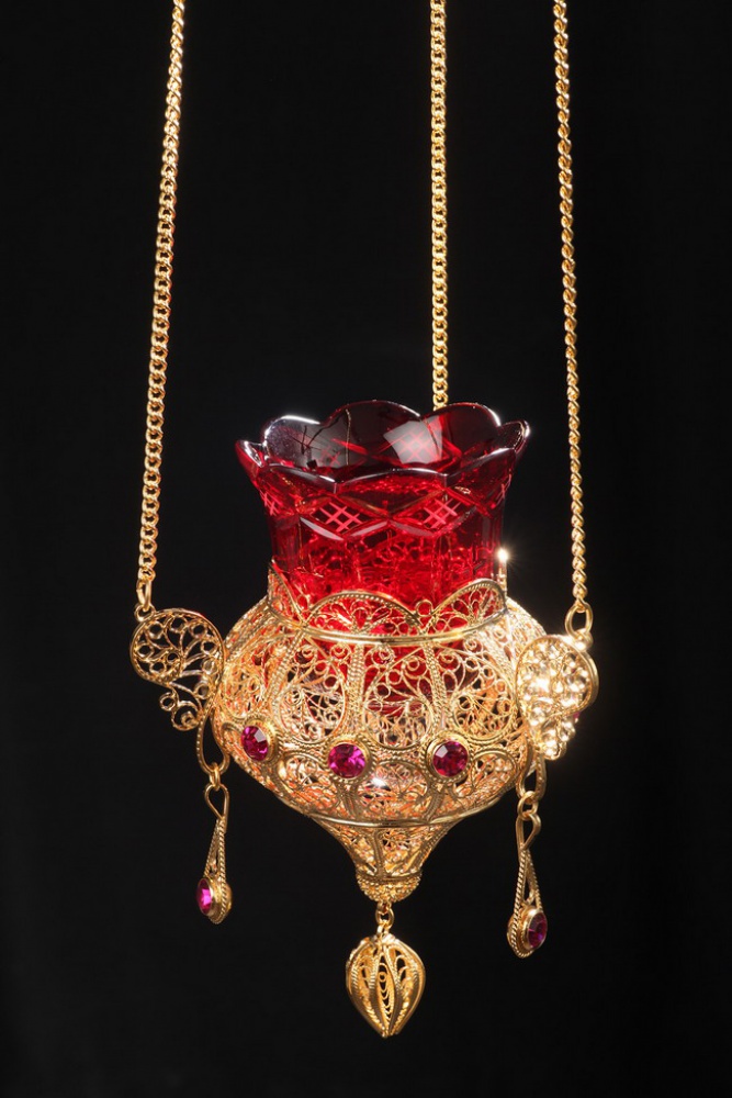 Стаканы из цветного хрусталя временно отсутствуют. Лампады можно изготовить только с прозрачным хрустальным стаканом либо со стаканом из окрашеного цветного стекла.