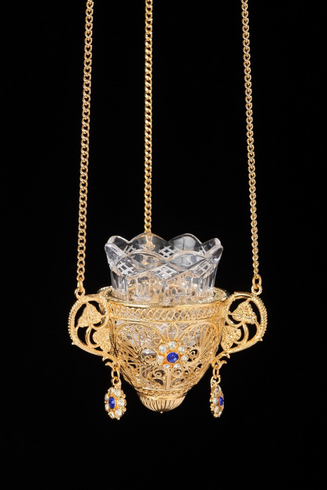 Стаканы из цветного хрусталя временно отсутствуют. Лампады можно изготовить только с прозрачным хрустальным стаканом либо со стаканом из окрашеного цветного стекла.