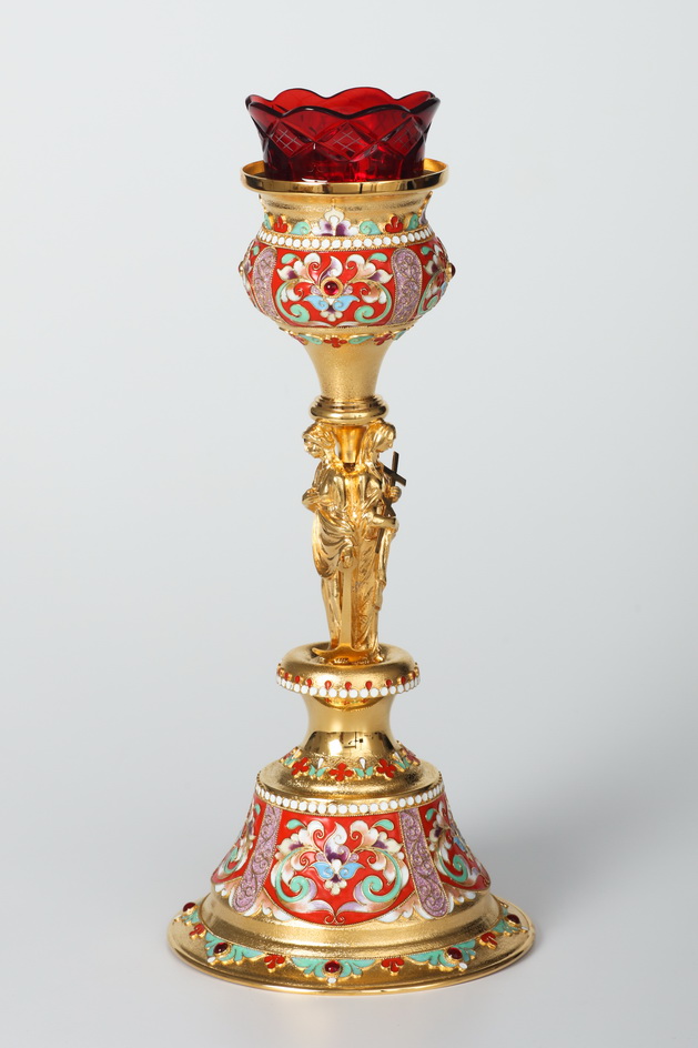 Стаканы из цветного хрусталя временно отсутствуют. Лампады можно изготовить только с прозрачным хрустальным стаканом либо со стаканом из окрашеного цветного стекла.