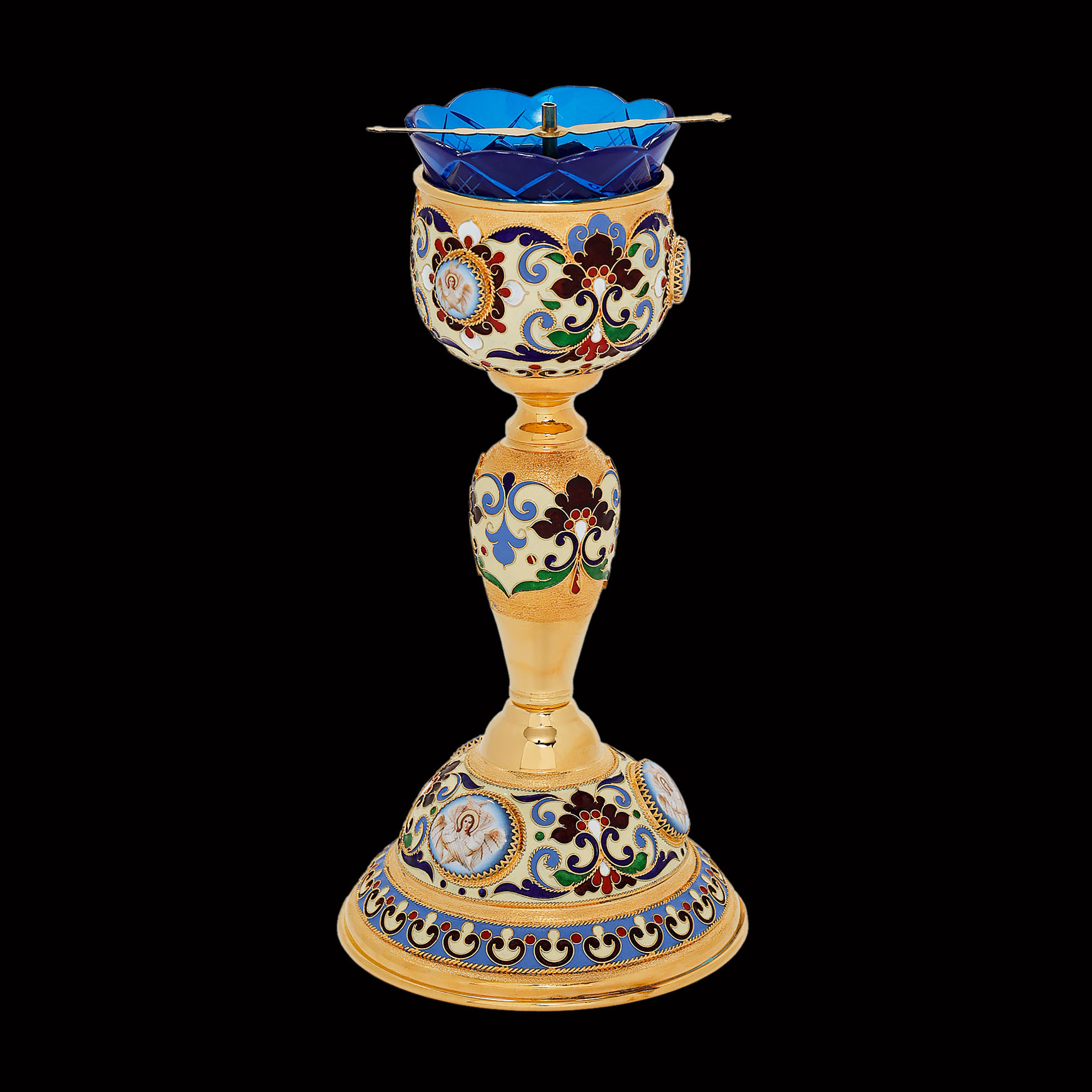 Лампада напрестольная №14 эмаль, 6-деколей / золочение