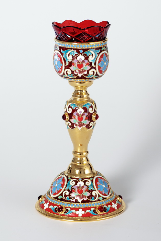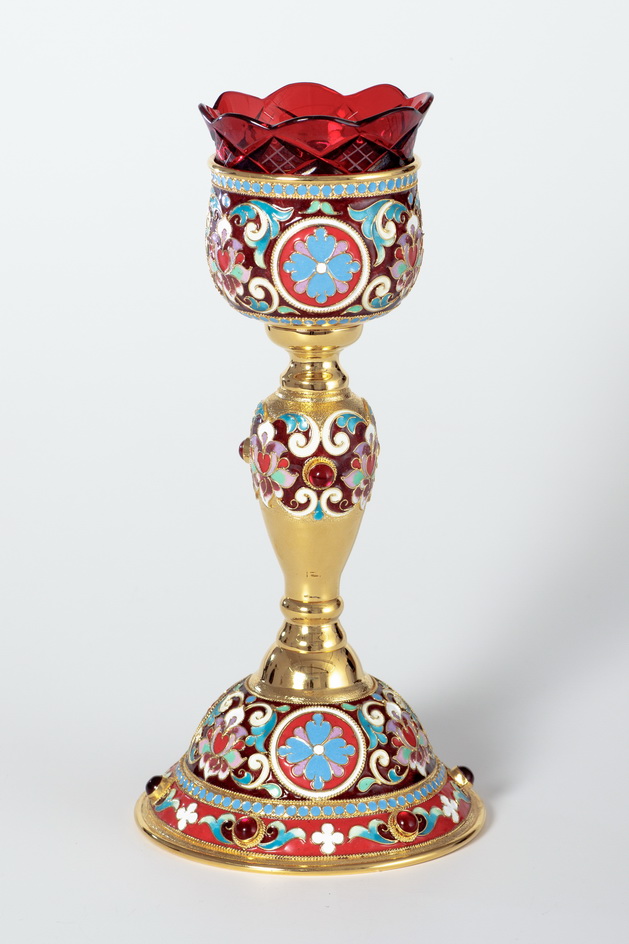 Стаканы из цветного хрусталя временно отсутствуют. Лампады можно изготовить только с прозрачным хрустальным стаканом либо со стаканом из окрашеного цветного стекла.