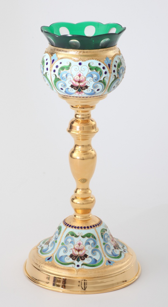 Стаканы из цветного хрусталя временно отсутствуют. Лампады можно изготовить только с прозрачным хрустальным стаканом либо со стаканом из окрашеного цветного стекла.