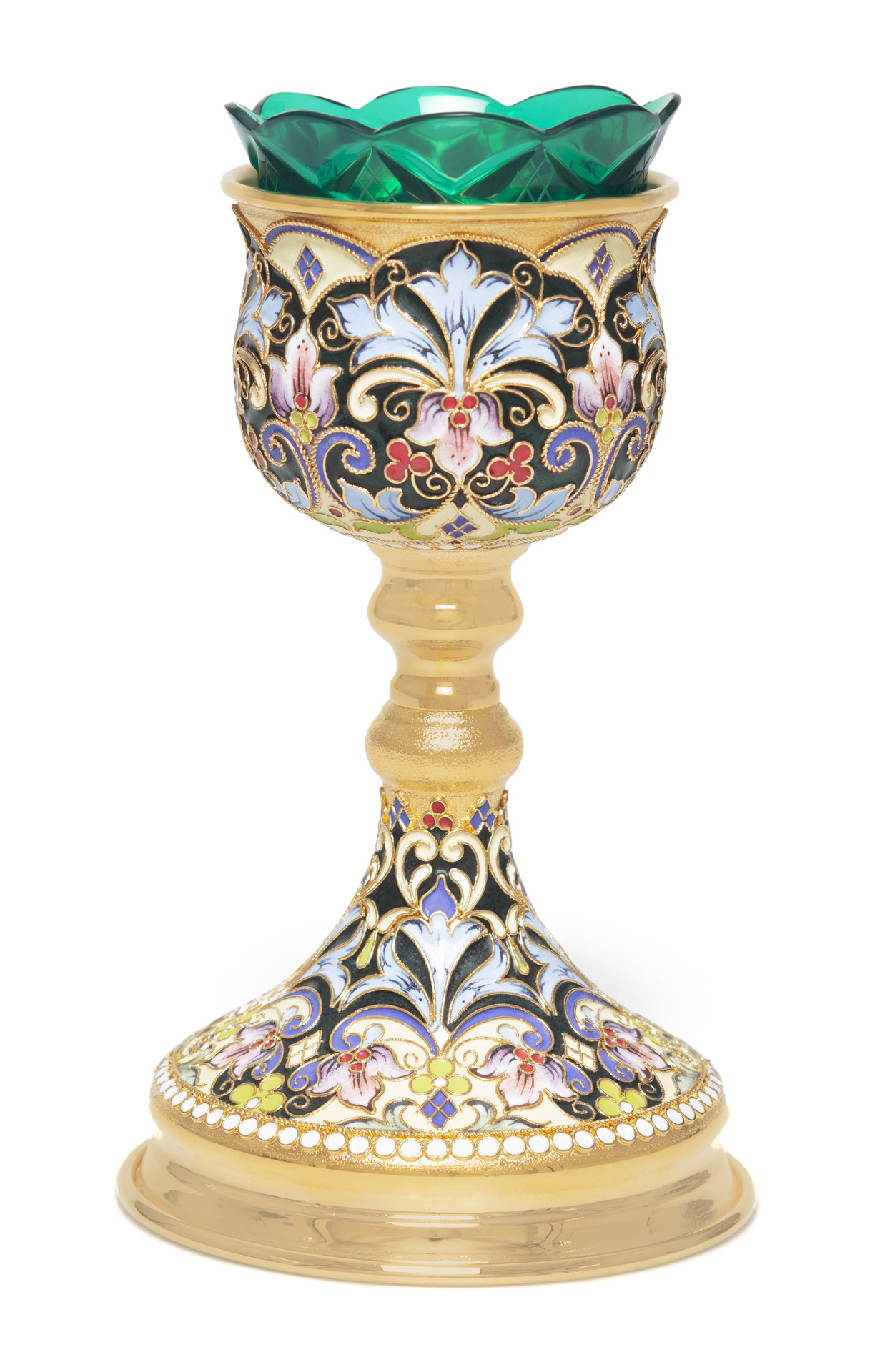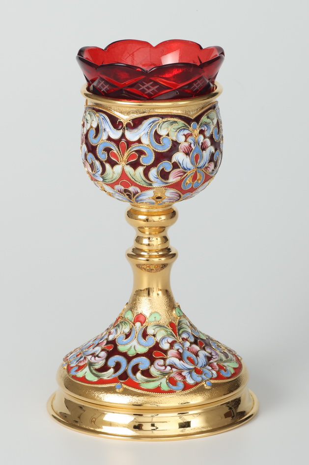 Стаканы из цветного хрусталя временно отсутствуют. Лампады можно изготовить только с прозрачным хрустальным стаканом либо со стаканом из окрашеного цветного стекла.