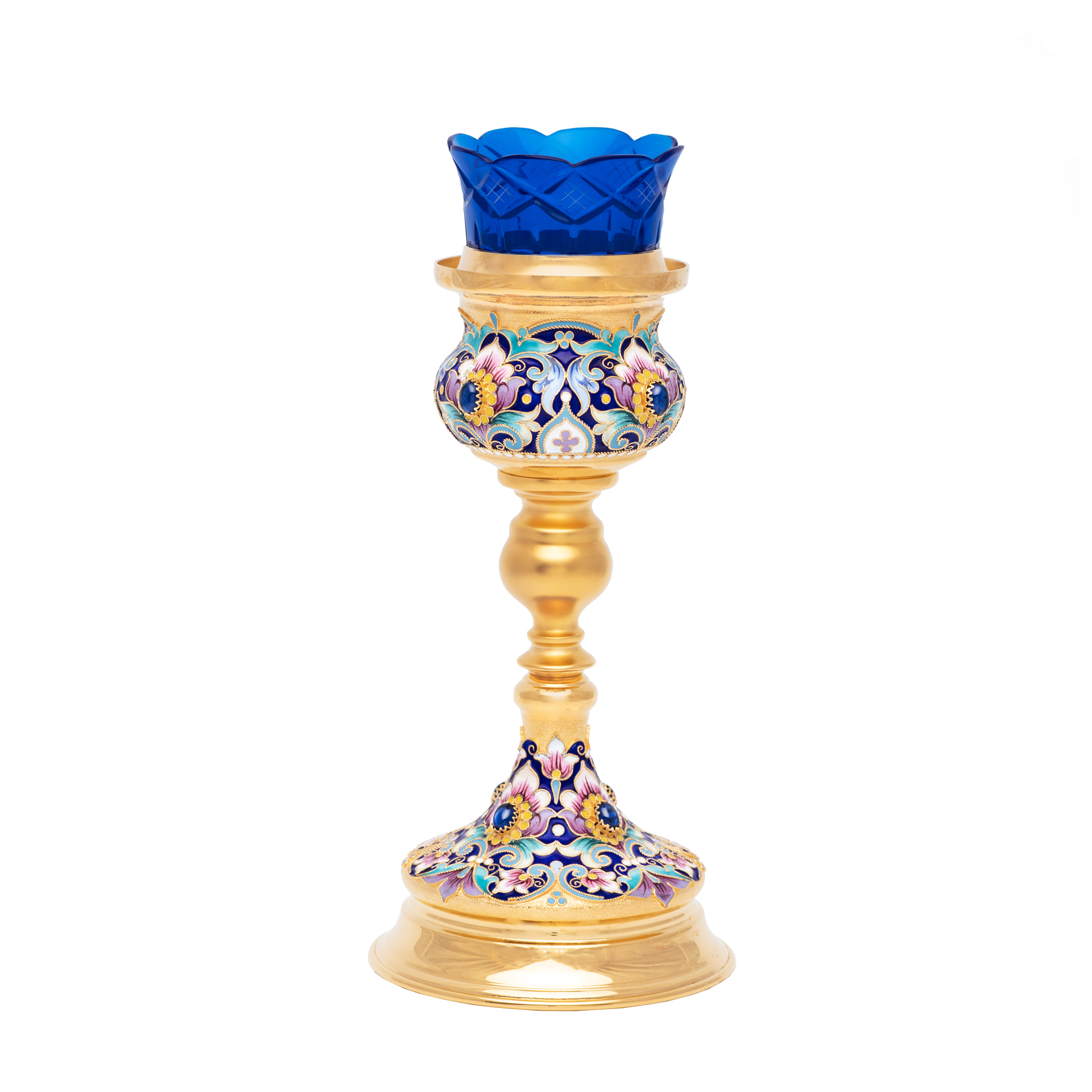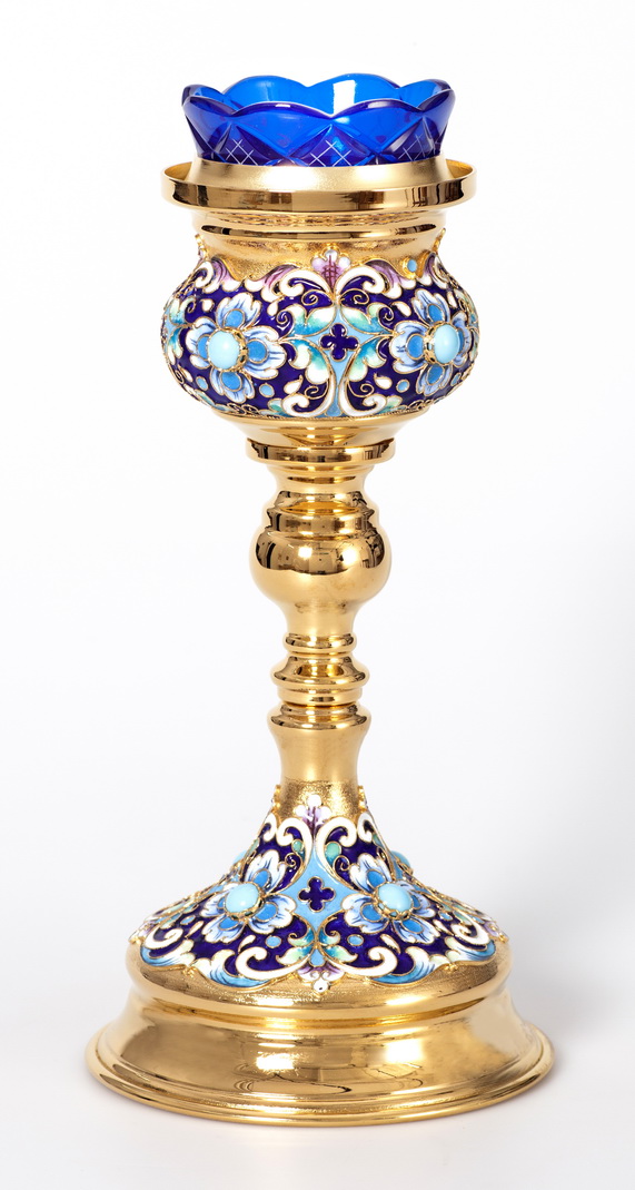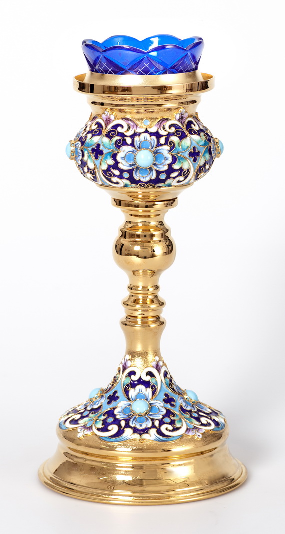 Стаканы из цветного хрусталя временно отсутствуют. Лампады можно изготовить только с прозрачным хрустальным стаканом либо со стаканом из окрашеного цветного стекла.