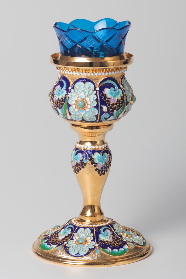Стаканы из цветного хрусталя временно отсутствуют. Лампады можно изготовить только с прозрачным хрустальным стаканом либо со стаканом из окрашеного цветного стекла.