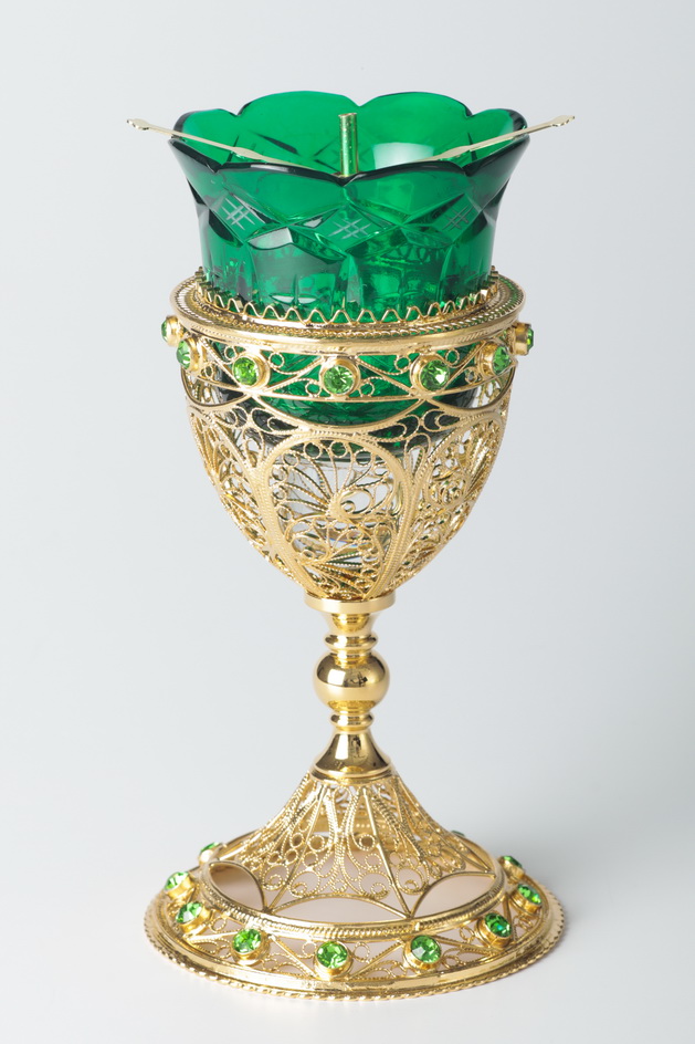 Стаканы из цветного хрусталя временно отсутствуют. Лампады можно изготовить только с прозрачным хрустальным стаканом либо со стаканом из окрашеного цветного стекла.