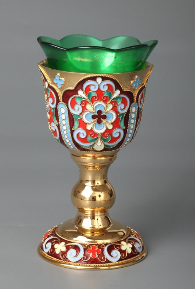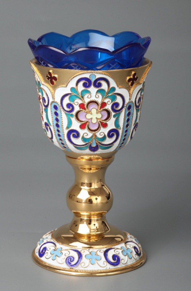 Стаканы из цветного хрусталя временно отсутствуют. Лампады можно изготовить только с прозрачным хрустальным стаканом либо со стаканом из окрашеного цветного стекла.