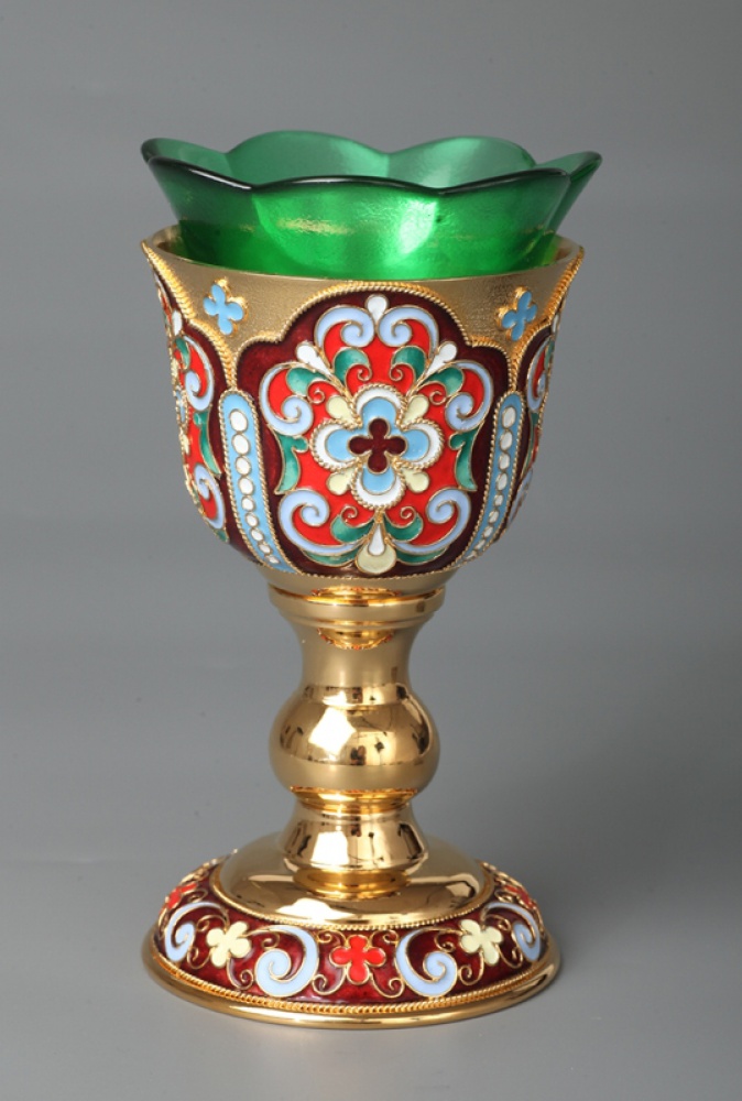 Лампада напрестольная малая с эмалью / золочение