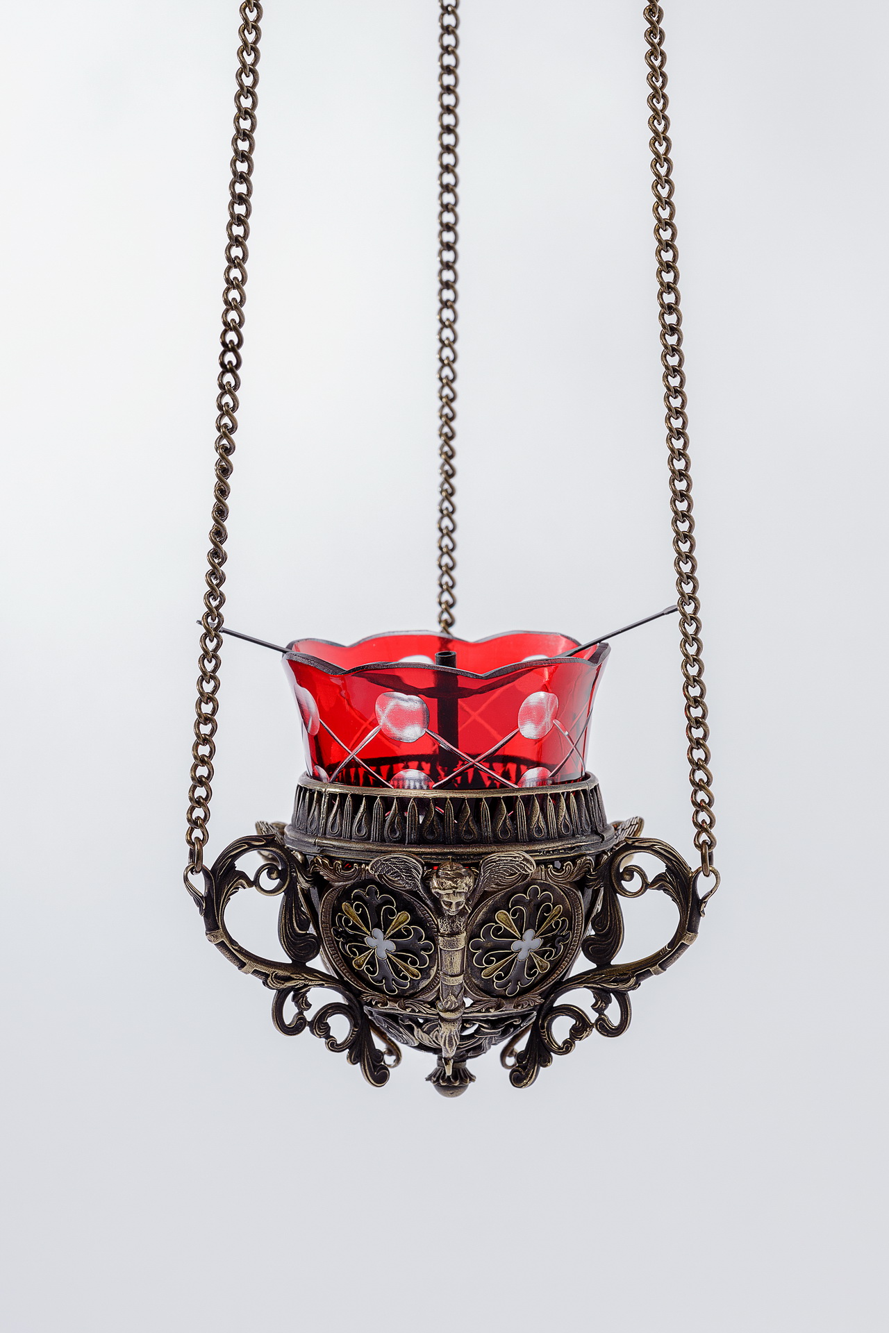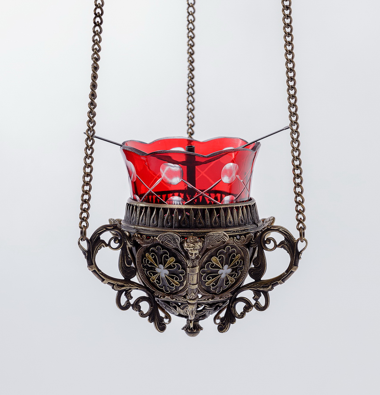 Стаканы из цветного хрусталя временно отсутствуют. Лампады можно изготовить только с прозрачным хрустальным стаканом либо со стаканом из окрашеного цветного стекла.