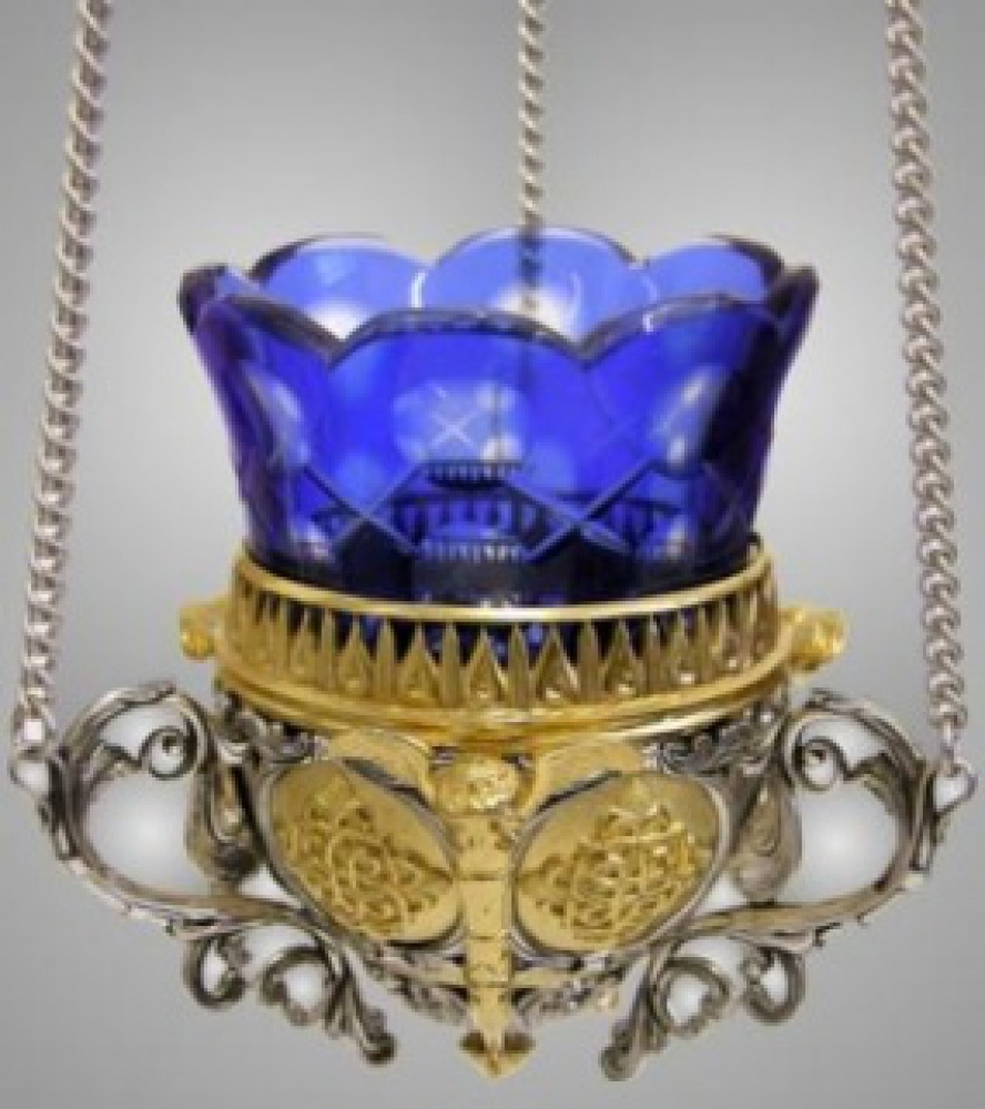Стаканы из цветного хрусталя временно отсутствуют. Лампады можно изготовить только с прозрачным хрустальным стаканом либо со стаканом из окрашеного цветного стекла.