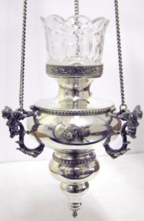 Стаканы из цветного хрусталя временно отсутствуют. Лампады можно изготовить только с прозрачным хрустальным стаканом либо со стаканом из окрашеного цветного стекла.