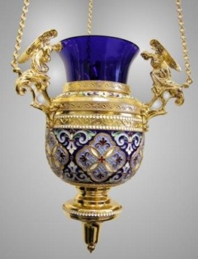 Стаканы из цветного хрусталя временно отсутствуют. Лампады можно изготовить только с прозрачным хрустальным стаканом либо со стаканом из окрашеного цветного стекла.