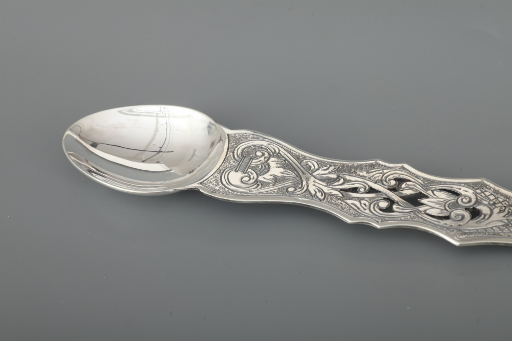 Лжица ручная гравировка, углубленная, выпильная серебро (УИН)