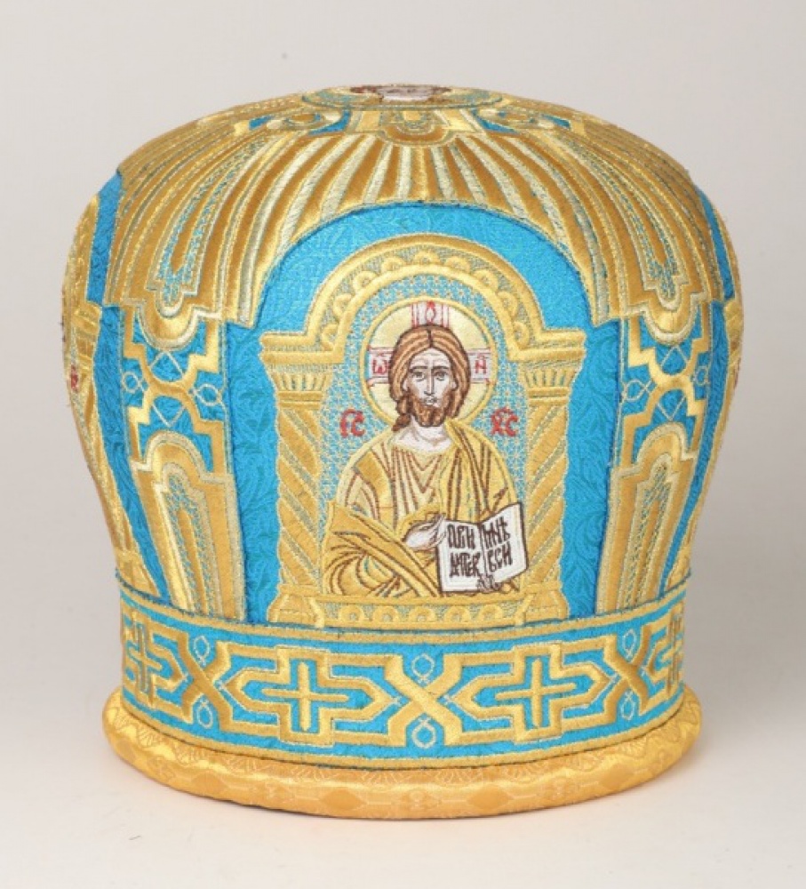 Митра №016 глазет вышивка а/м вышитые иконы в футляре голубой {{variant.name}}