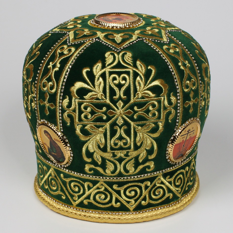 зеленая митра по акции размер 60. Митра выполнена из натурального немецкого бархата.