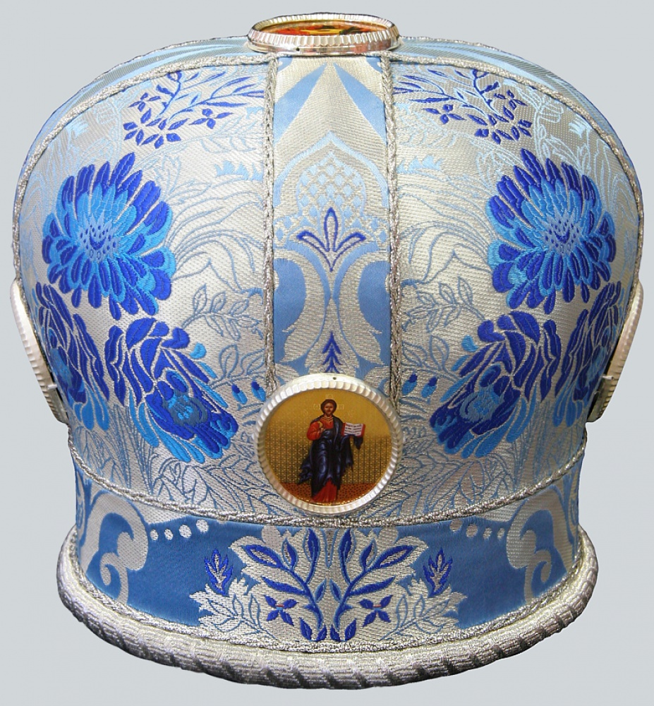 Митра выполнена из греческой парчи.