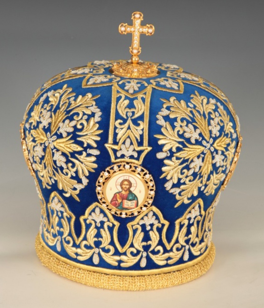 Митра с ручной вышивкой, выполнена из натурального немецкого бархата.