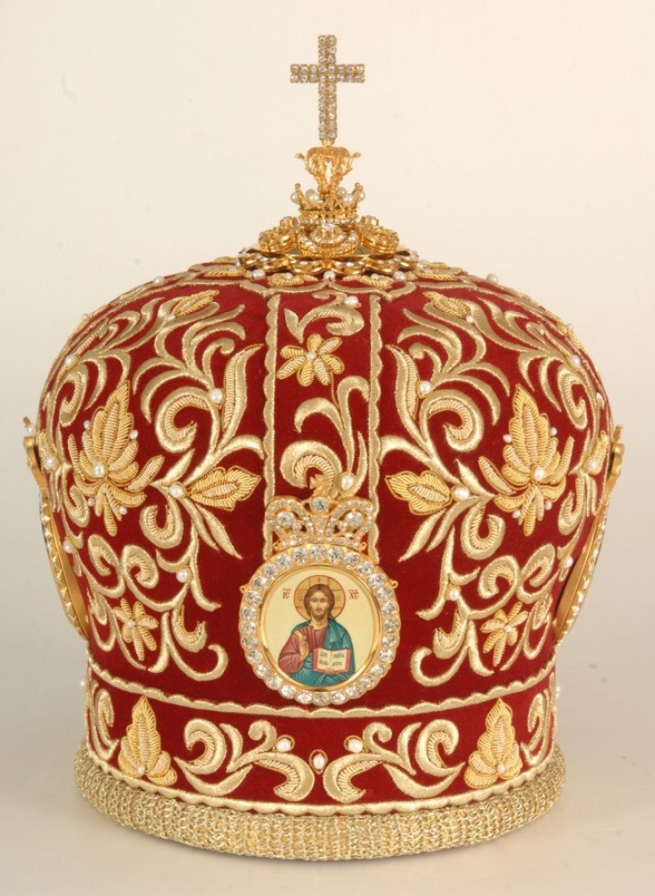 Митра с ручной вышивкой, выполнена из натурального немецкого бархата.
