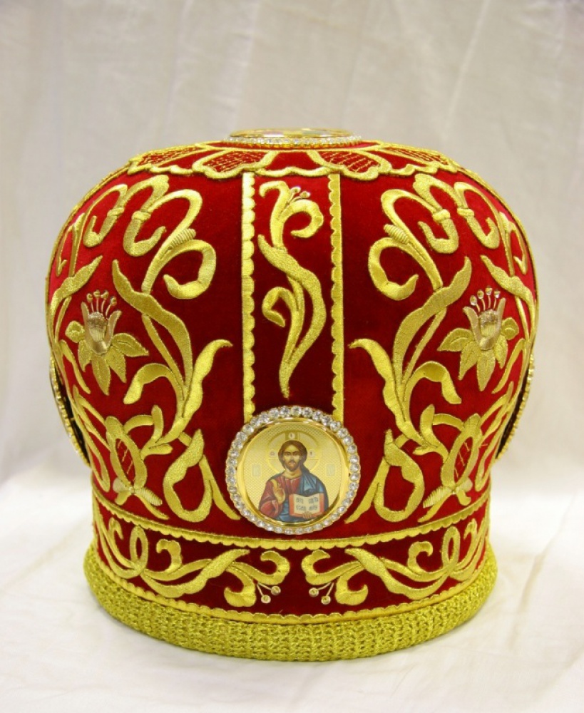 Митра с ручной вышивкой,выполнена из натурального немецкого бархата.