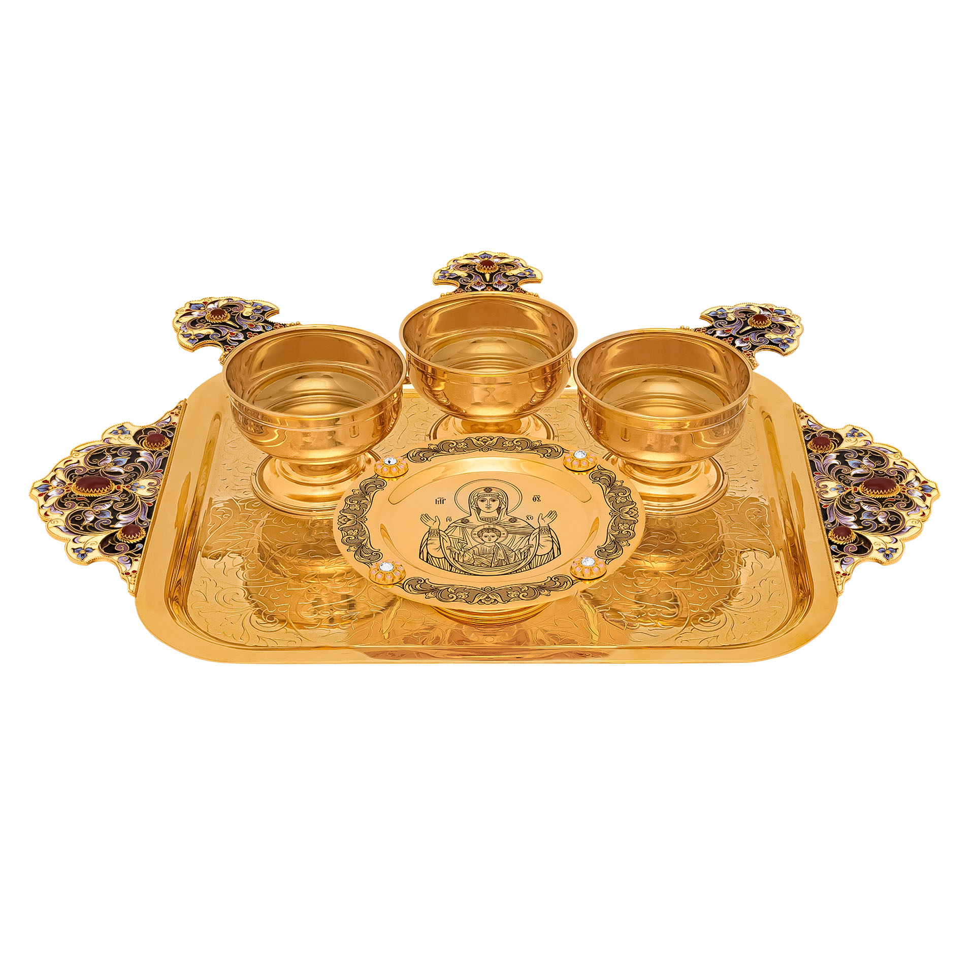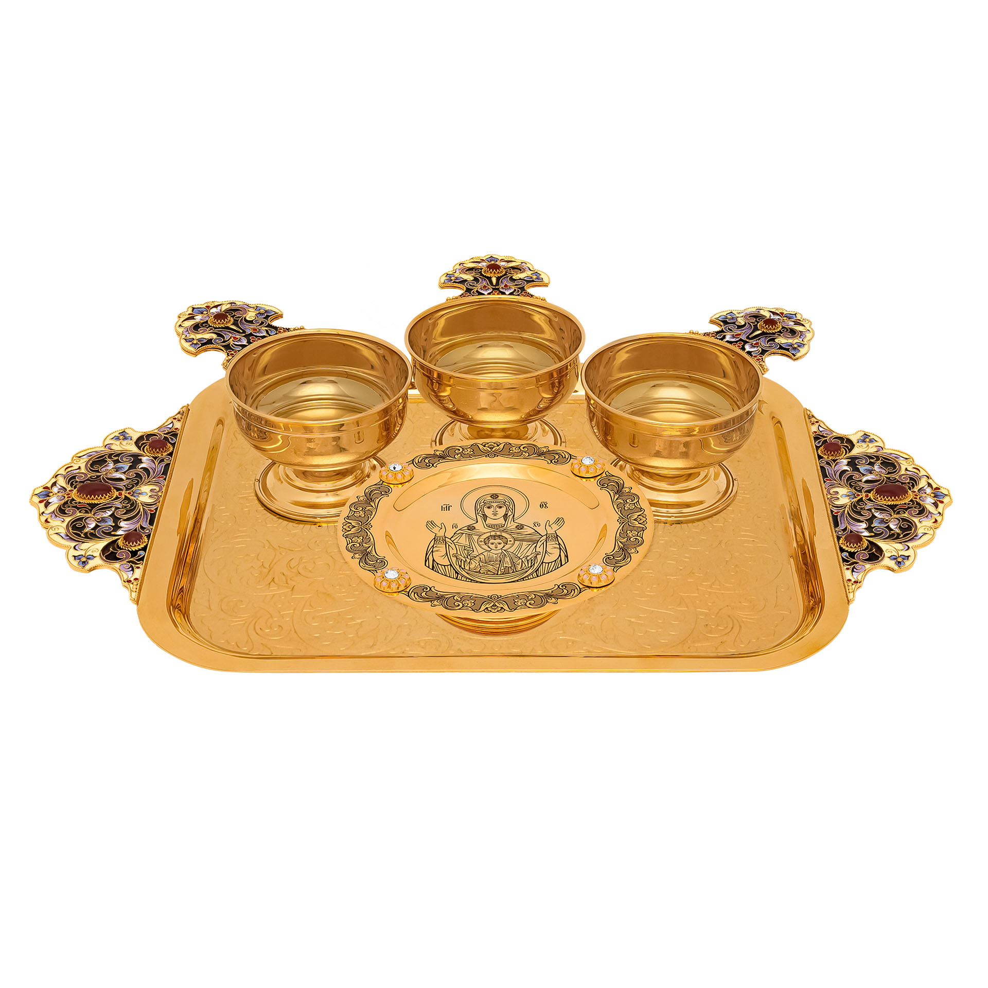 Набор для причастия / 3 ковша + 1 дискос +1 поднос / роспись / золочение