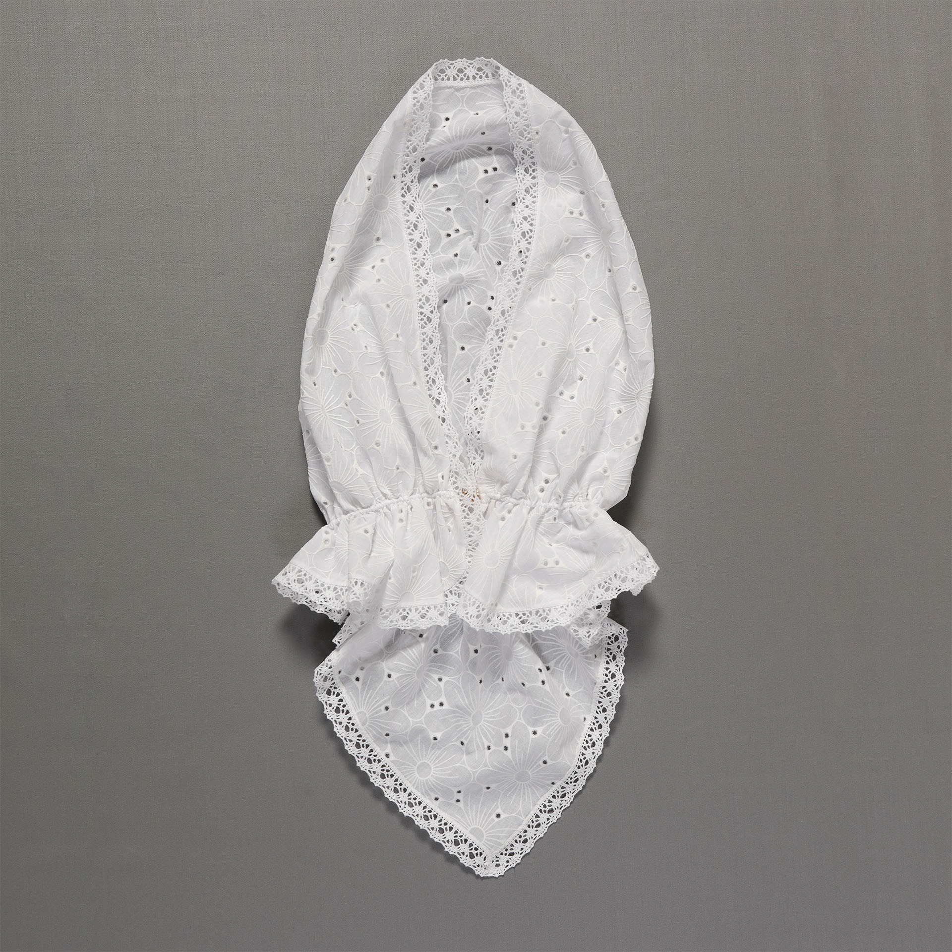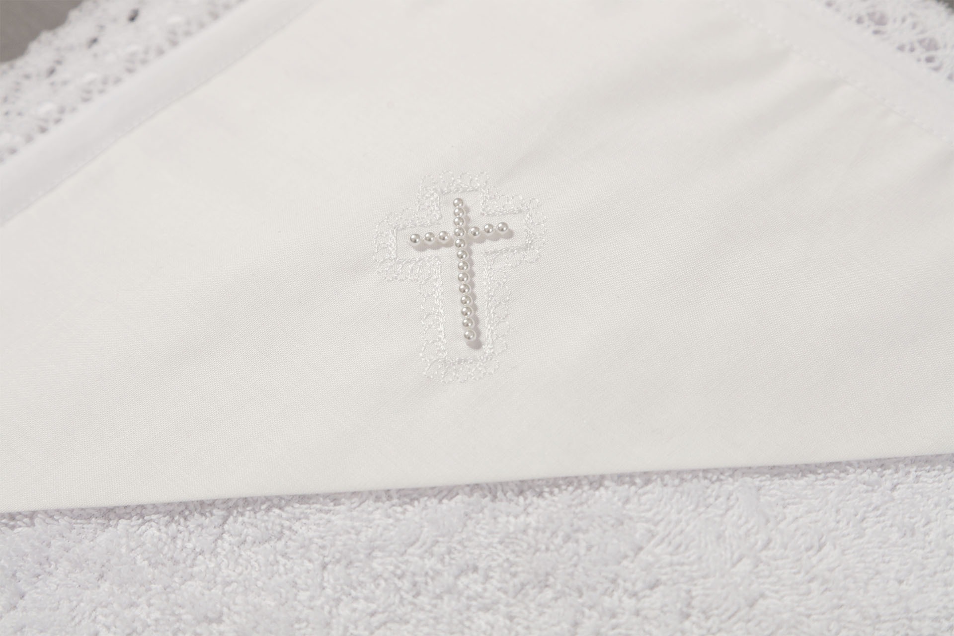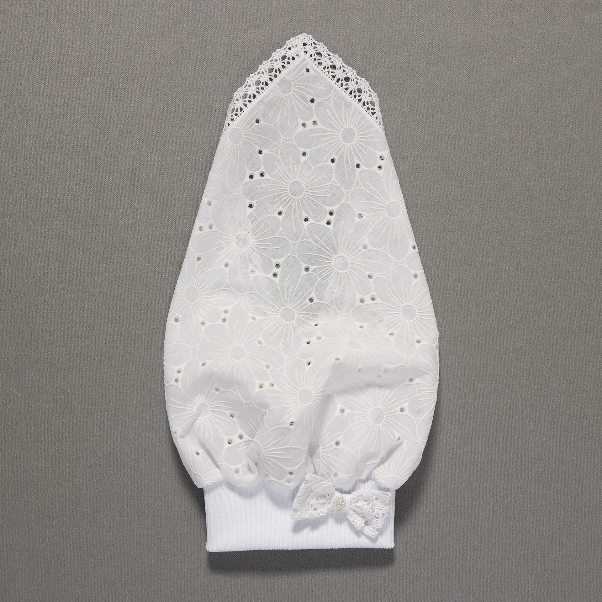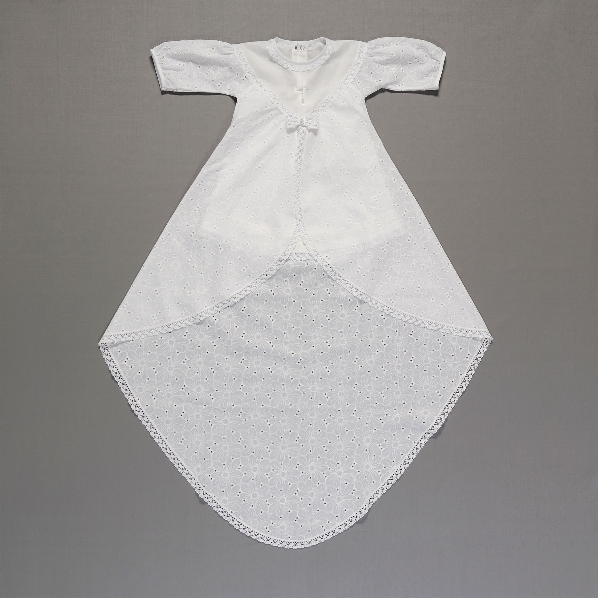 Набор крестильный д\девочки (платье со шлейфом, косынка-шапочка, пинетки, пеленка с уголком, платок-накидка) в упаковочной коробке белый {{variant.name}}