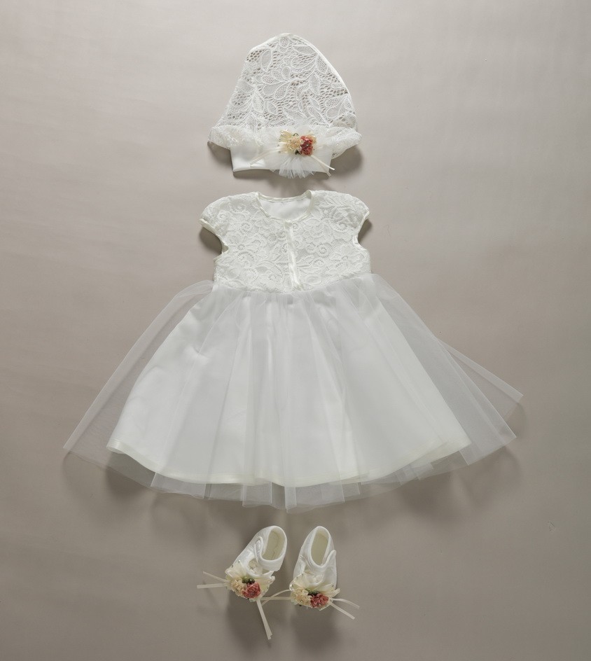 Набор подарочный для девочки к крестинам(косынка,платье,пинетки) {{variant.name}}