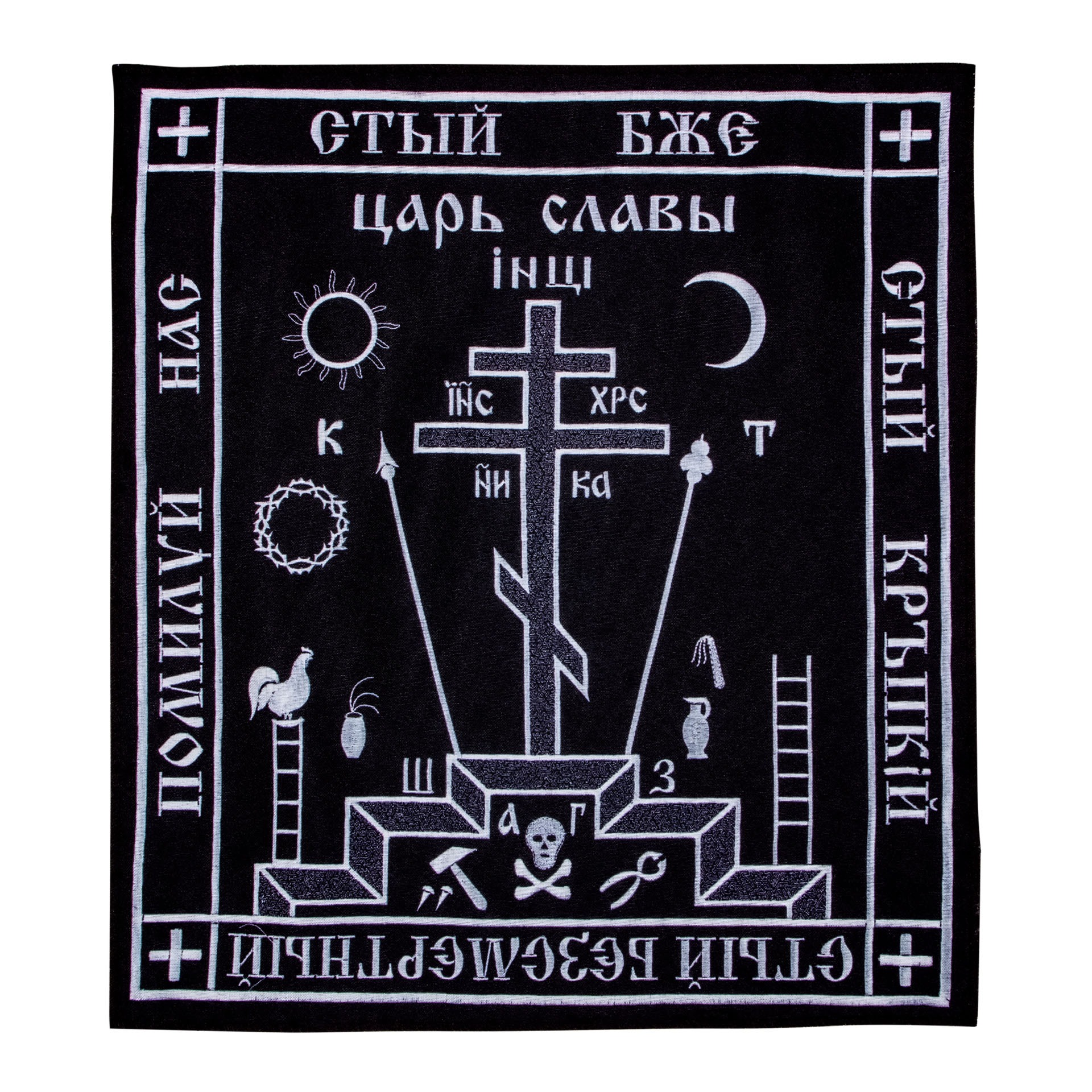 Наличник погребальный габардин сублимационная печать черный {{variant.name}}