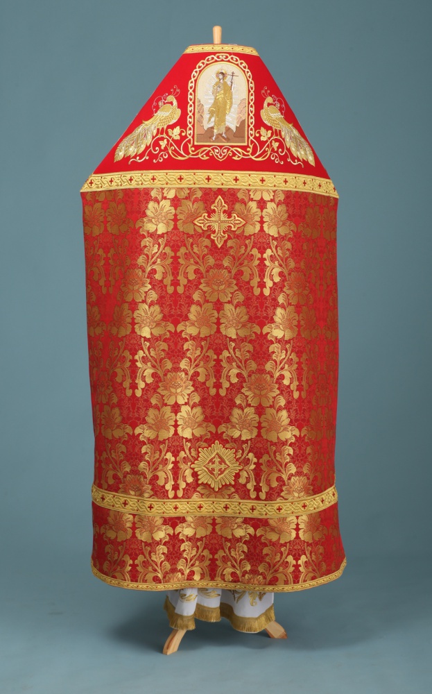 Состав материала: 70% полиэстер, 30% метонить. Отделочные элементы: вышитые галуны и кресты, бахрома, автоматическая вышивка оплечья с вышитой иконой. Доступно исполнение во всех богослужебных цветах. По Вашему желанию мы можем внести изменения в отделку или заменить материал. К исполнению доступны все размеры.