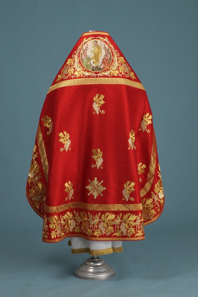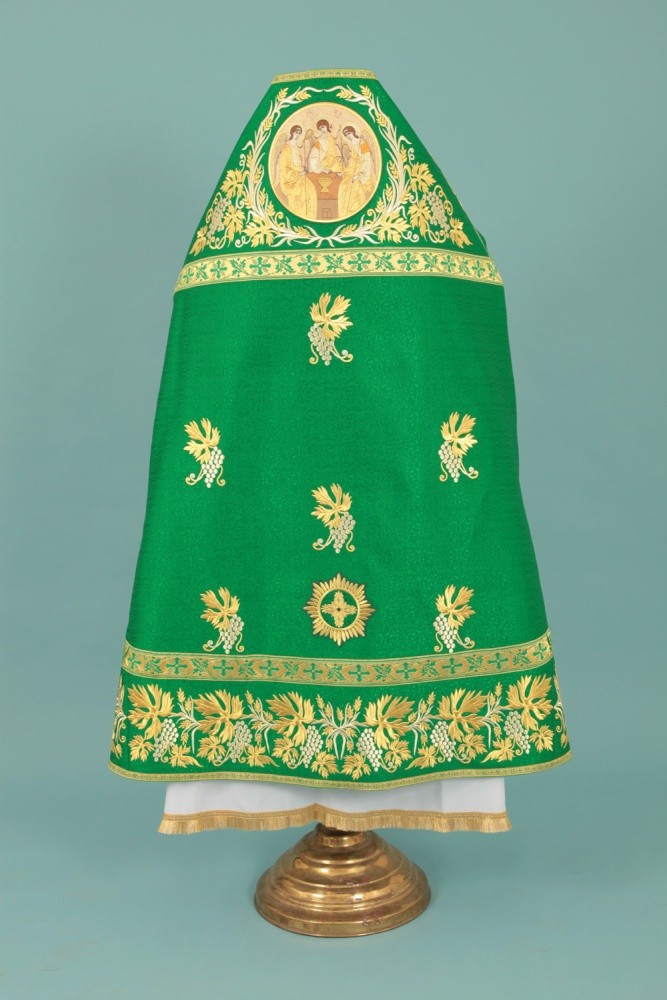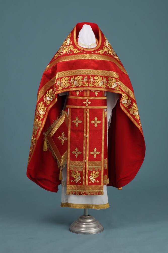 В комплект входит: фелонь, епитрахиль, поручи, пояс, набедренник, палица.