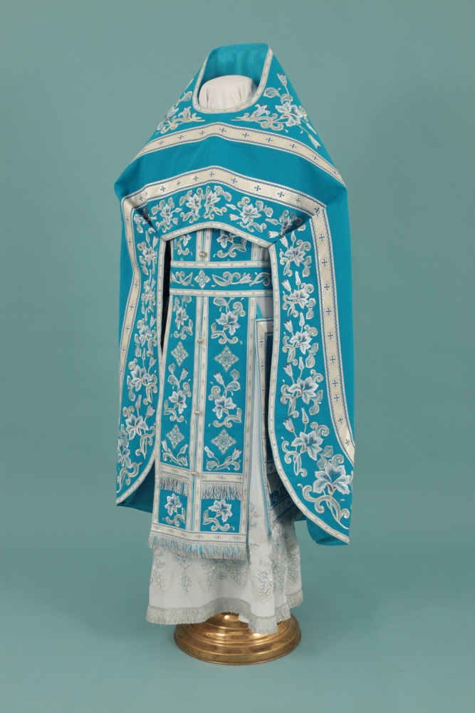В комплект входит: фелонь, епитрахиль, поручи, пояс, набедренник, палица.