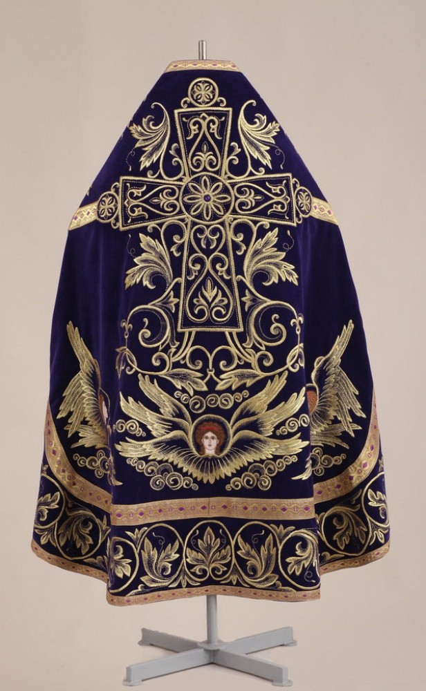 В комплект входит: фелонь, епитрахиль, поручи, пояс, набедренник, палица.