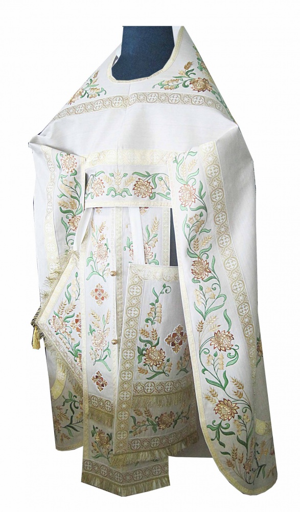 В комплект входит: фелонь, епитрахиль, поручи, пояс, набедренник, палица.