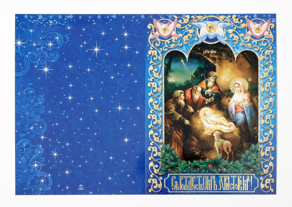 Открытка церковная двойная большого формата 4+0 тиснение "Рождество Христово" №18