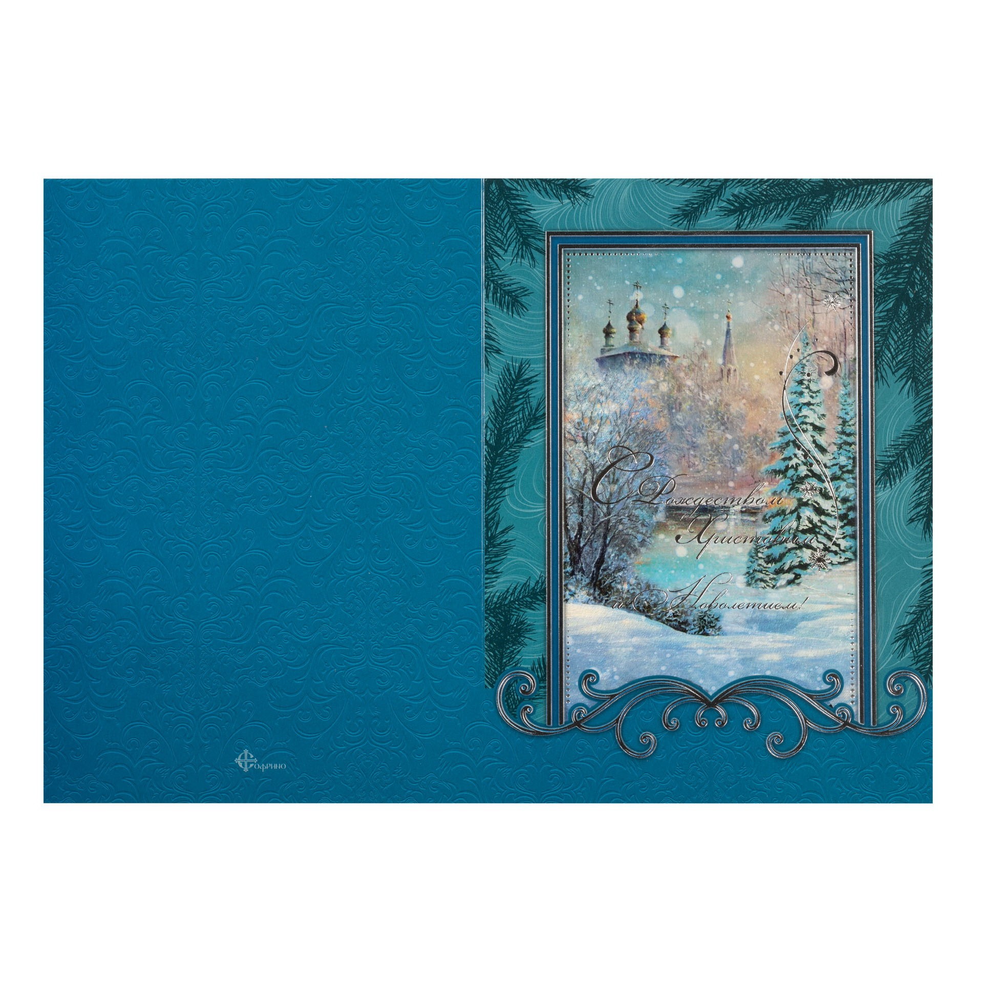 Открытка церковная двойная большого формата 4+0 тиснение "Рождество Христово" №21