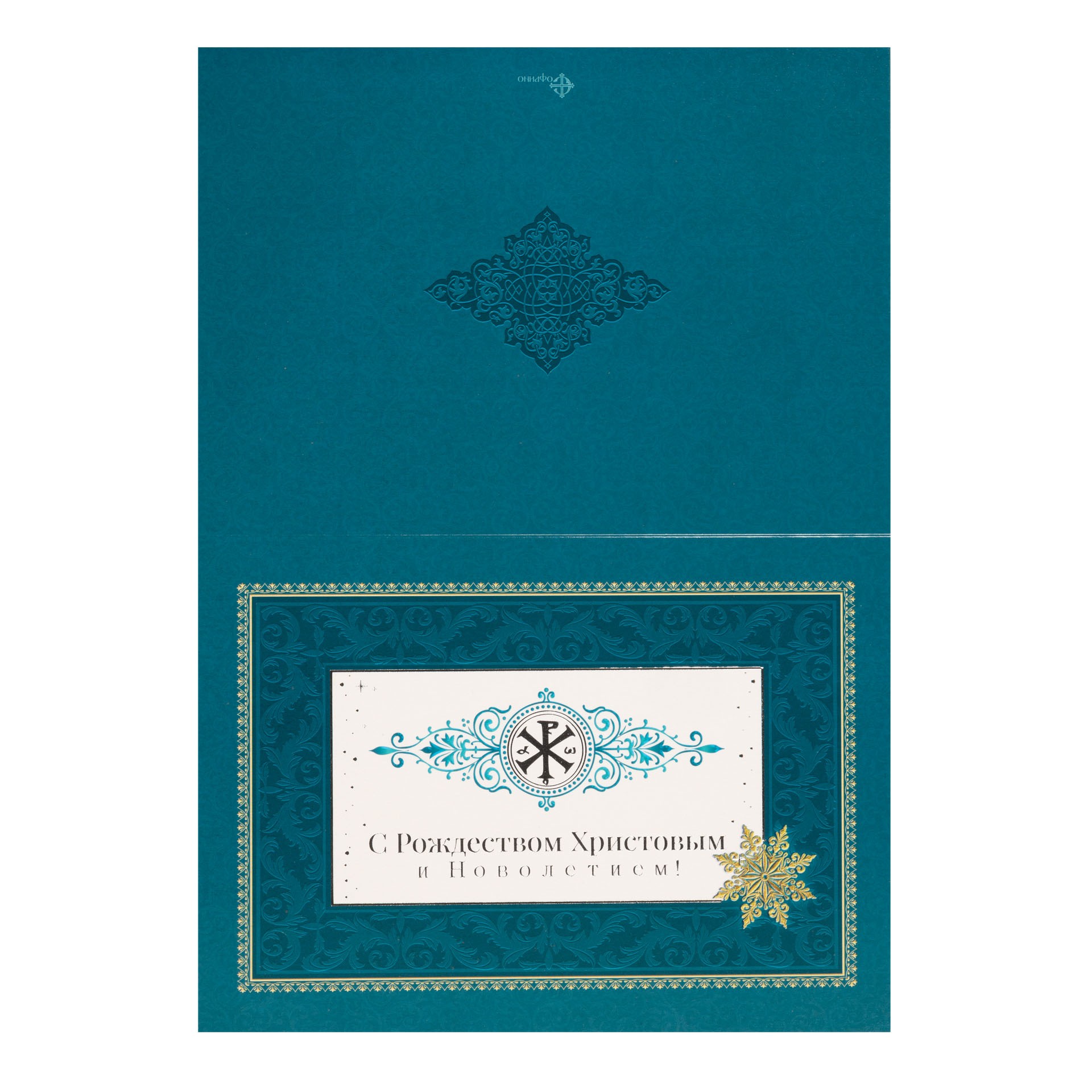 Открытка церковная двойная большого формата 4+0 тиснение "Рождество Христово" №24