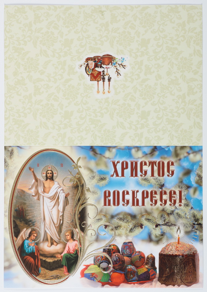 Открытка церковная двойная большого формата 4+0 тиснение "Воскресение Христово" №31