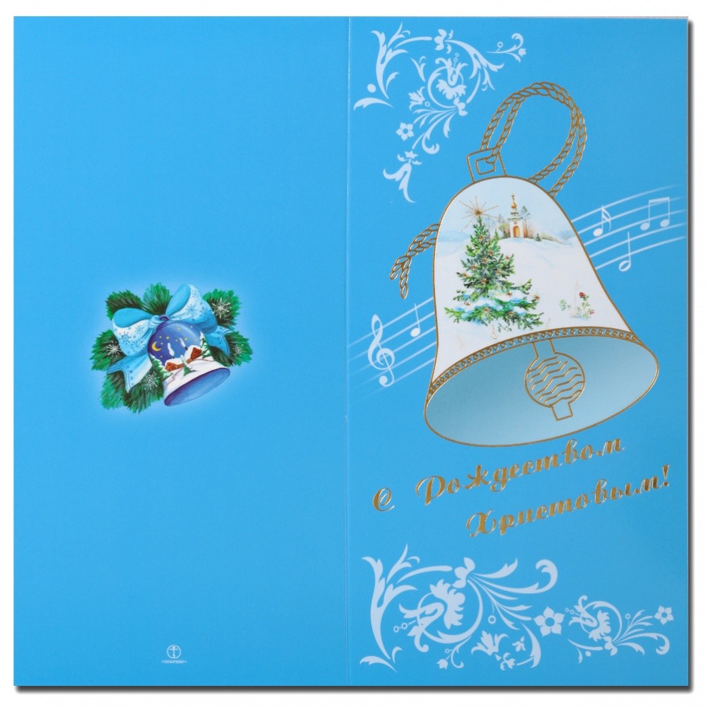 Открытка церковная двойная среднего формата 4+0 тиснение "Рождество Христово" №30