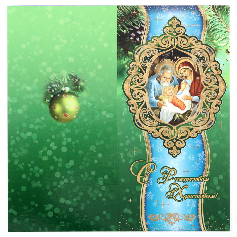 Открытка церковная двойная среднего формата 4+0 тиснение "Рождество Христово" №45