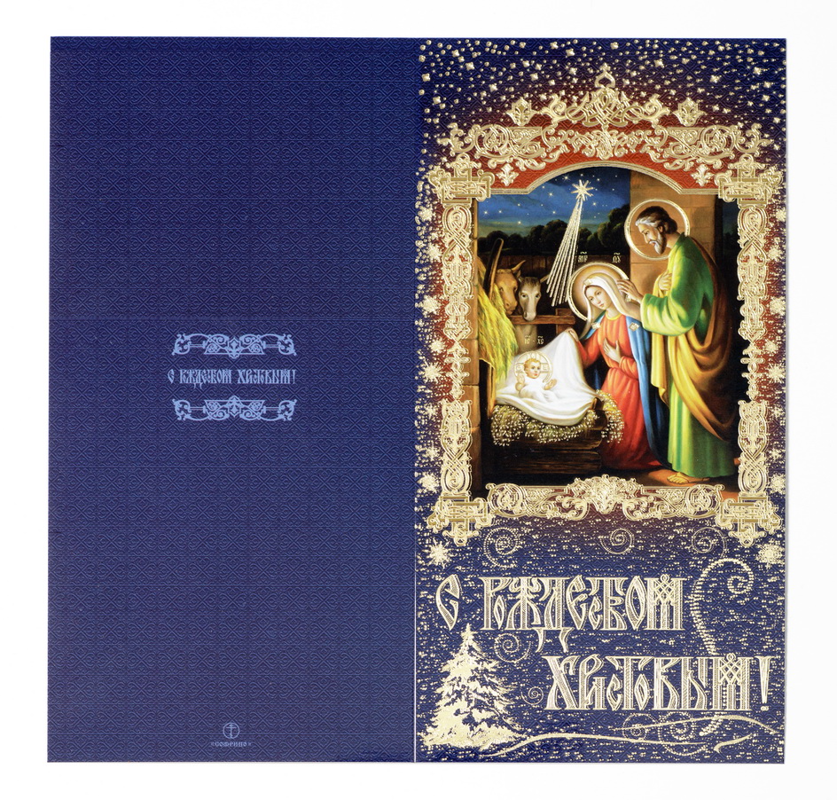 Открытка церковная двойная среднего формата 4+0 тиснение "Рождество Христово" №53