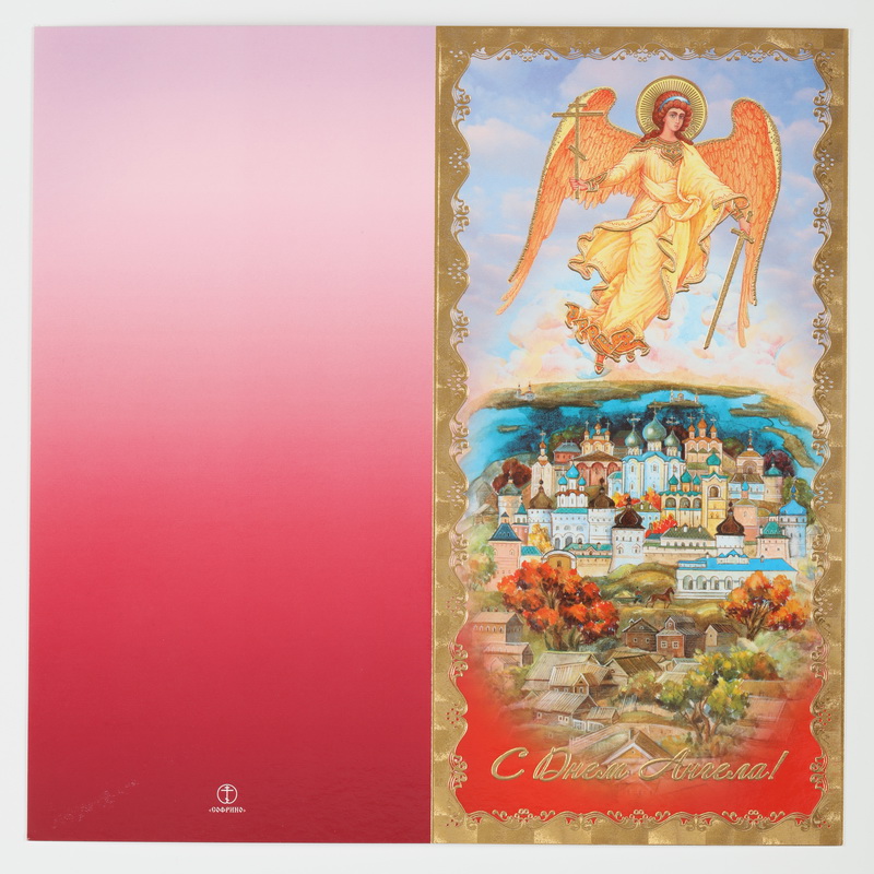Открытка церковная двойная среднего формата 4+0 тиснение "С Днем Ангела" №16