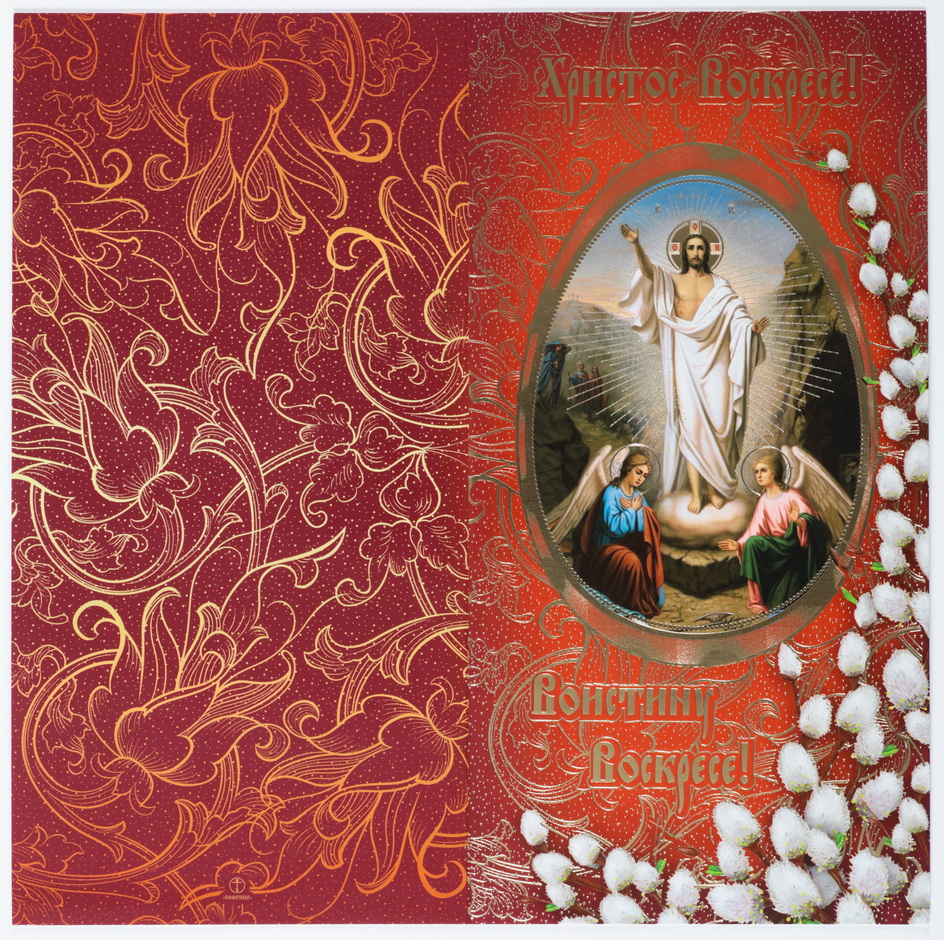 Открытка церковная двойная среднего формата 4+0 тиснение "Воскресение Христово" №67