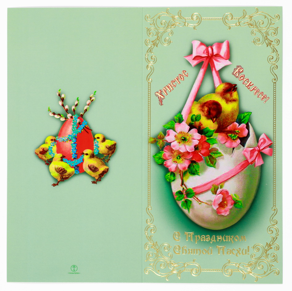 Открытка церковная двойная среднего формата 4+0 тиснение "Воскресение Христово" №75
