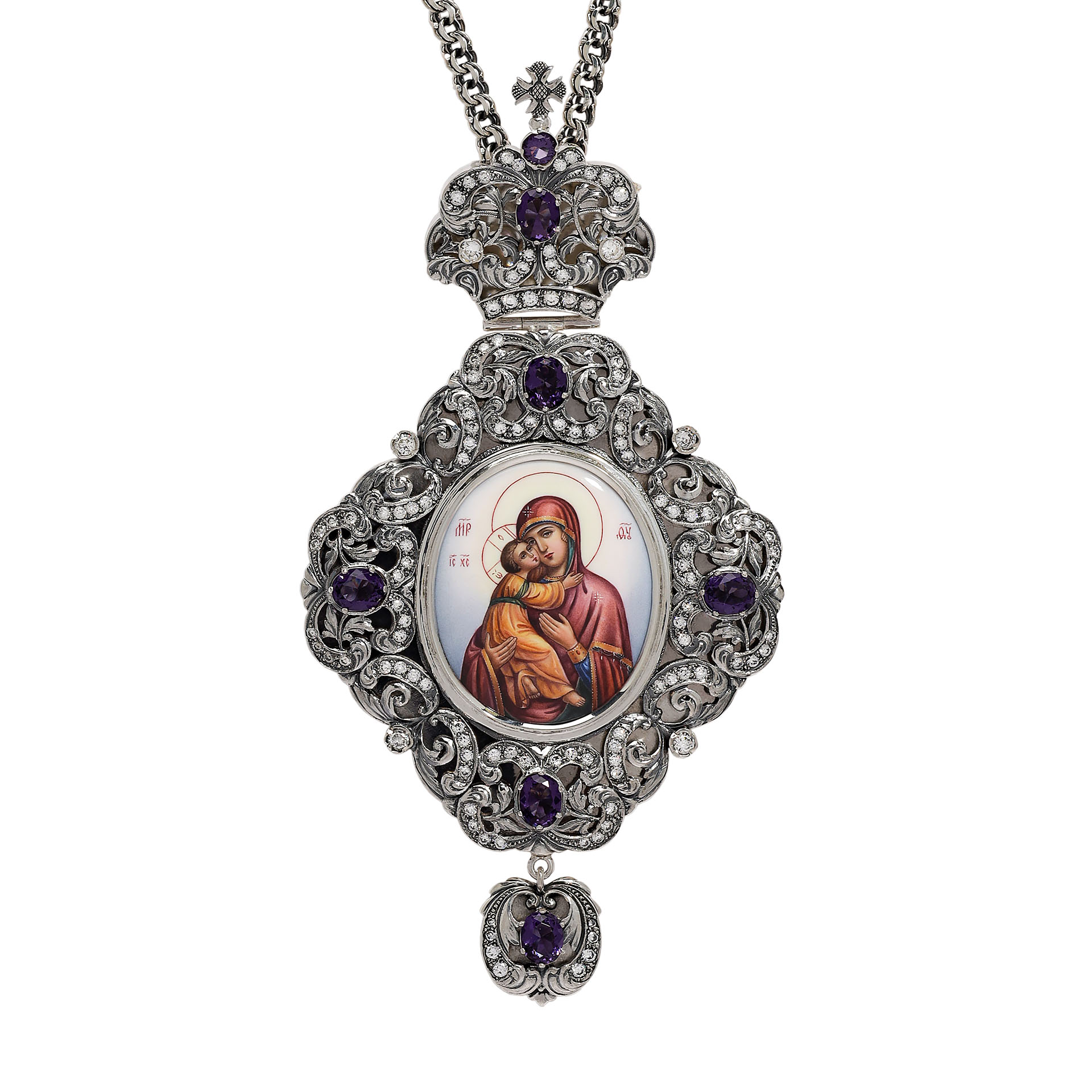 Панагия №102 / Фианиты серебро Владимирская БМ (УИН)