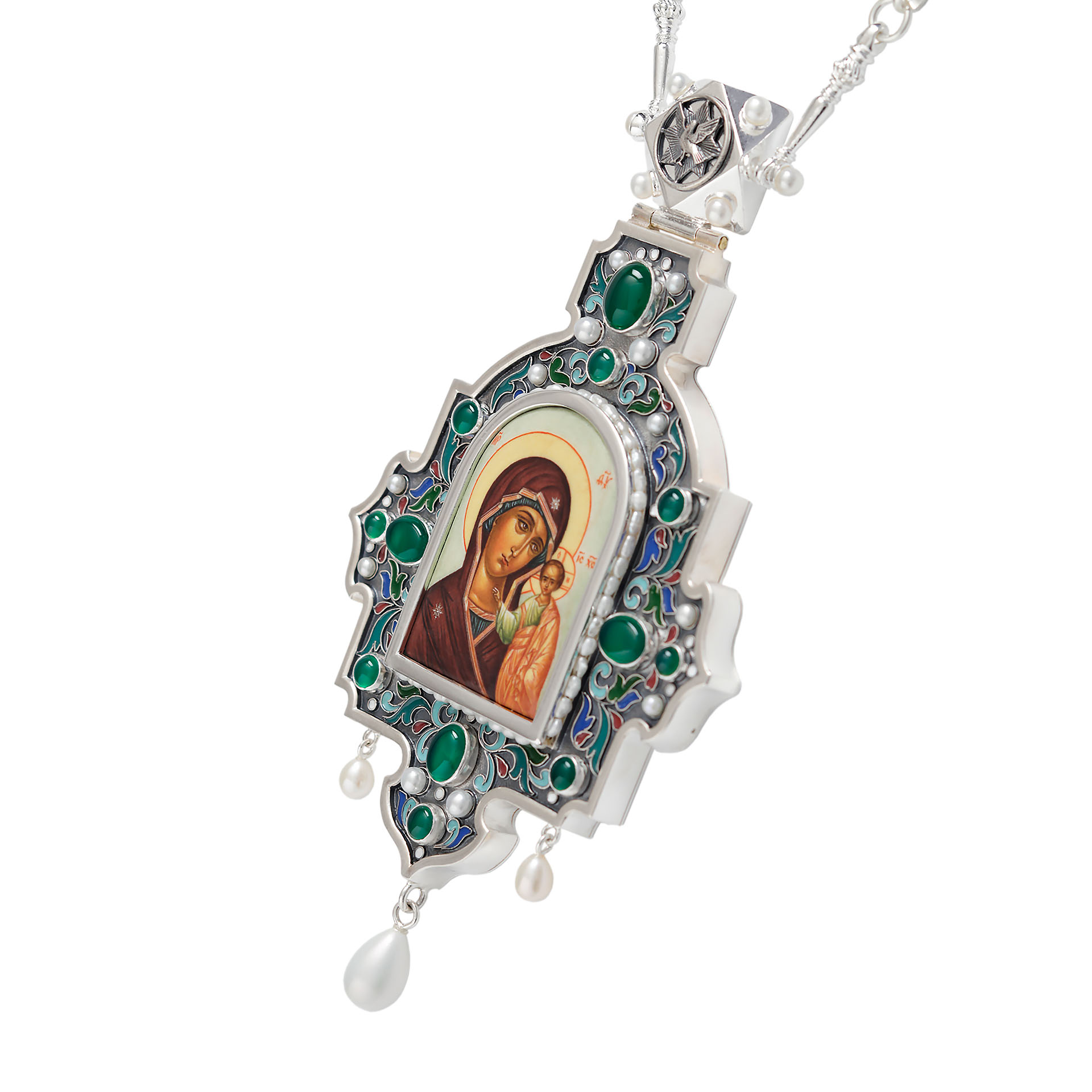 Панагия №1415 / Фианиты деколь, эмаль / серебрение / Казанская БМ