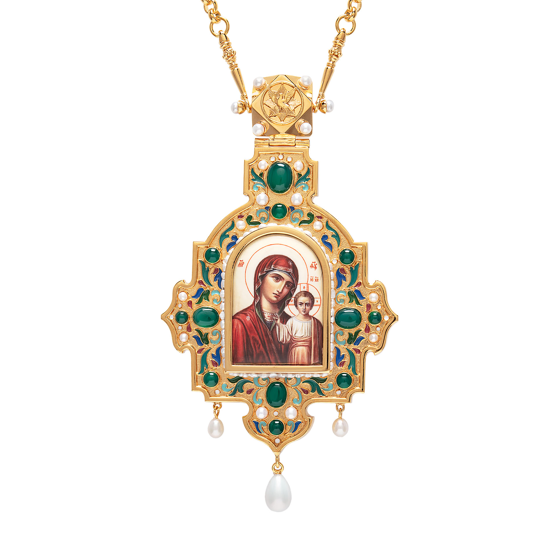 Панагия №1415 / Фианиты деколь, эмаль / золочение