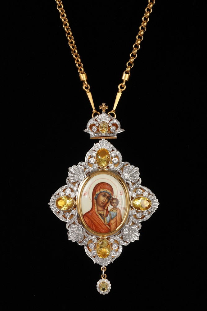 Панагия №1482 / золочение / серебро финифть Казанская БМ (УИН)