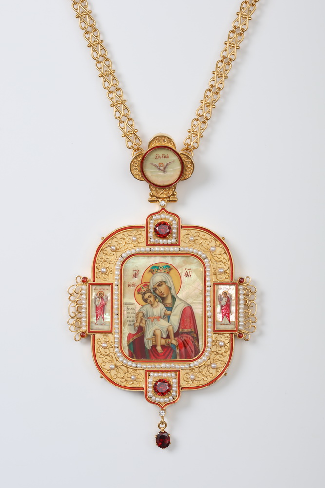 Панагия №1517 / золочение / серебро живопись, филигрань, эмаль Достойно Есть (УИН)